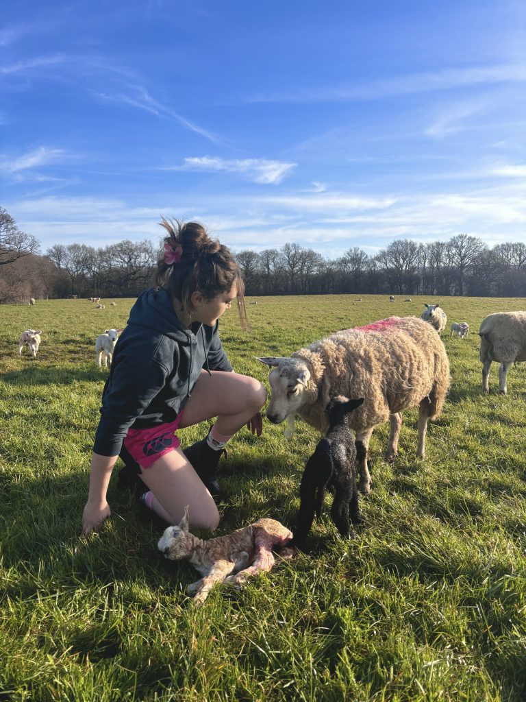 Learning how to lamb a ewe! It is something I wanted to learn straight away and it is a great skill to have on the farm! There is a lot of learning that comes with it, but I’ve had some great teachers, grabbed every opportunity to learn and be as hands on as possible about it, and I have had many great experiences of my own already. I would say I have built a lot of confidence from it! I know a lot of people joke about working with sheep – and I totally understand the reasons why as they can be difficult to work with! Personally it’s something I quite enjoy and love learning about. So much so, I started my own flock of Dutch Spotted Sheep in 2024!