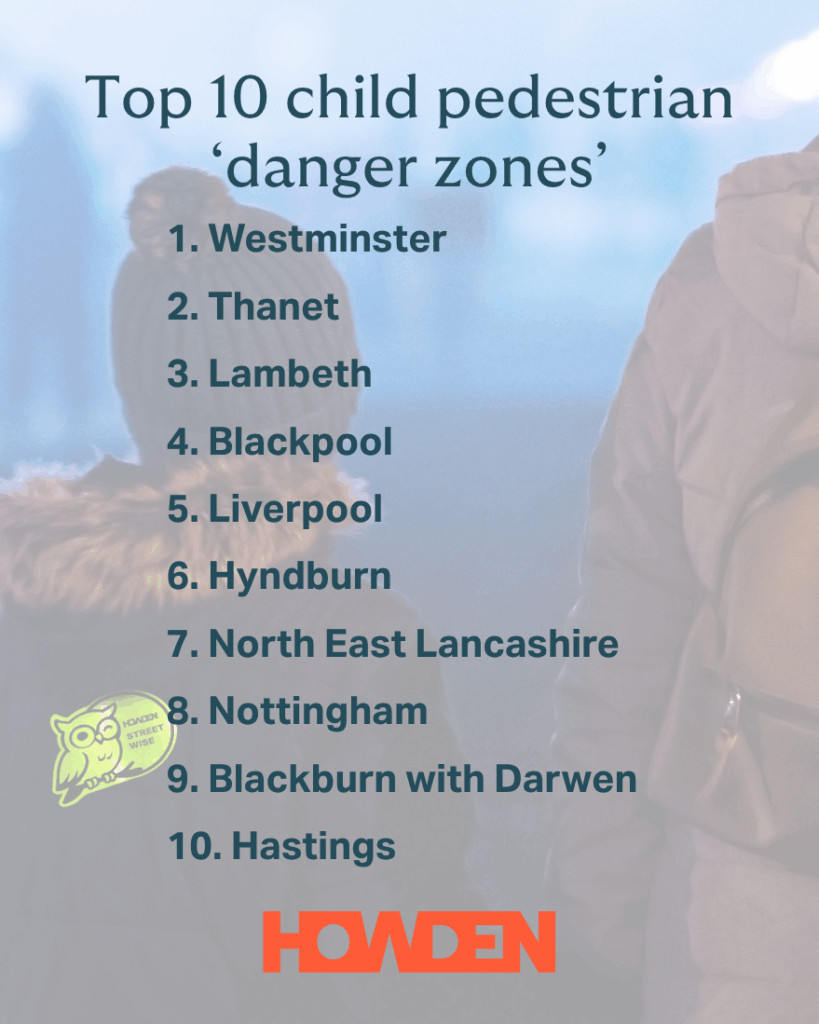 Other high-risk areas include Hyndburn, North East Lincolnshire, and Blackburn with Darwen, where children account for over 40% of pedestrian casualties.